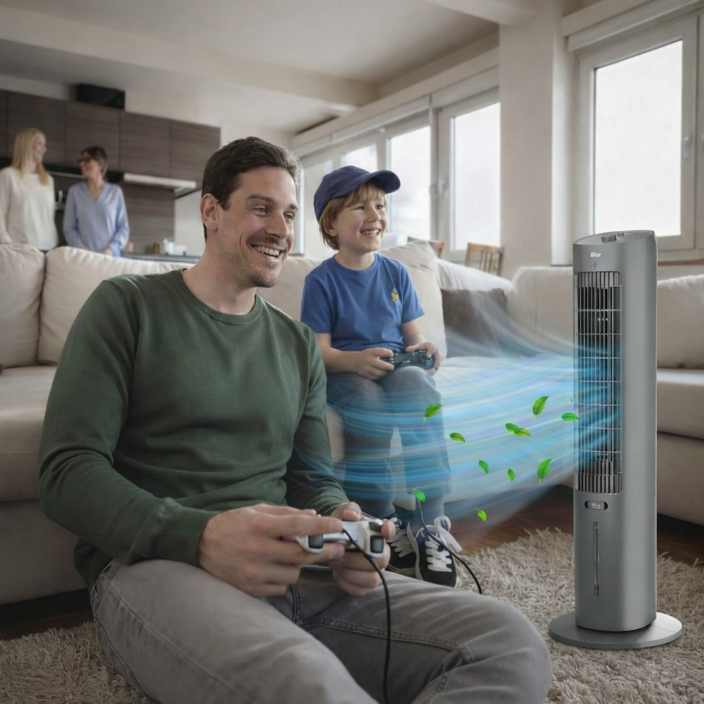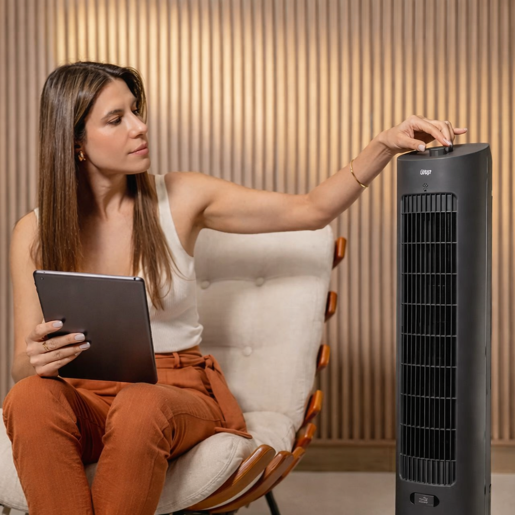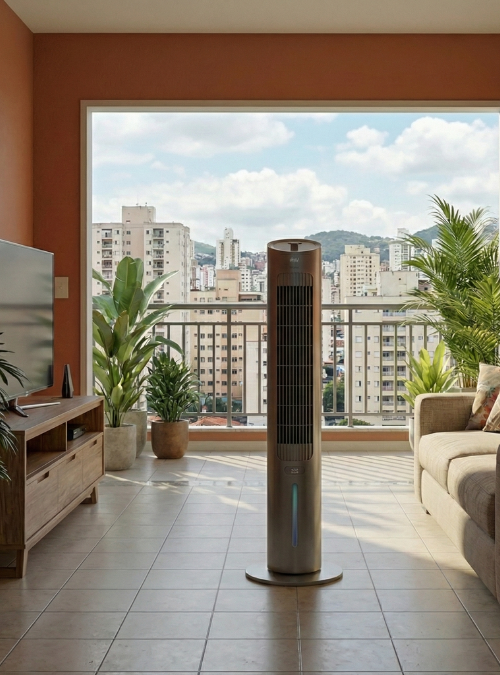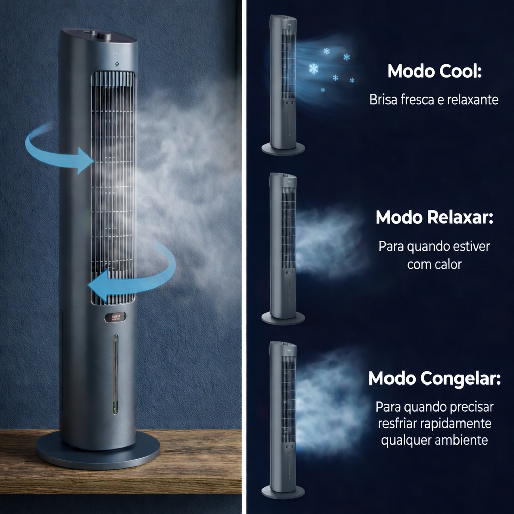 Seu design moderno garante uma operação quase silenciosa, perfeita para quem tem sono leve ou para quem quer um ambiente de trabalho fresco e silencioso.