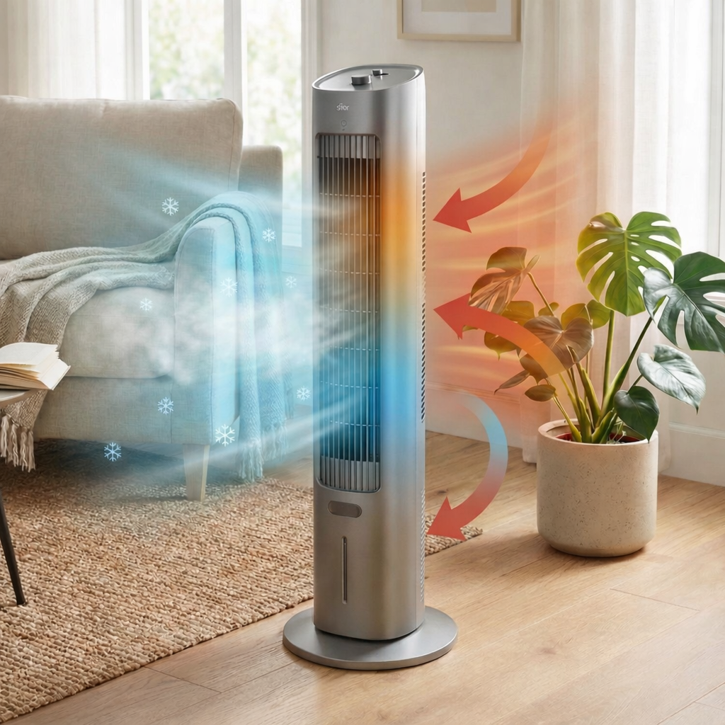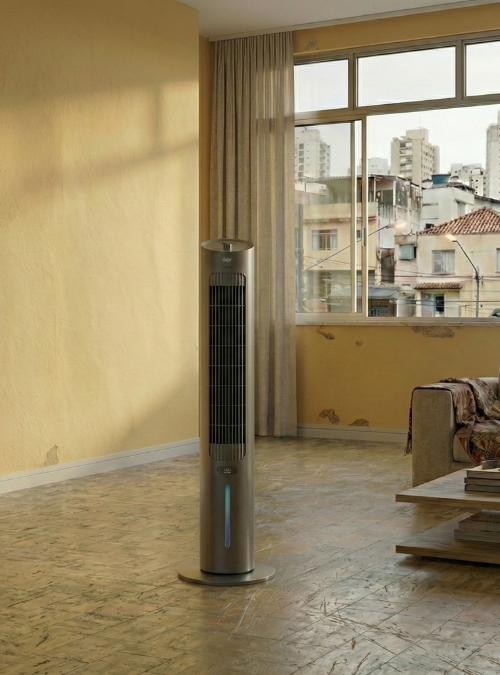 Seu tamanho é pequeno se comparado a um Ar Condicionado tradicional, mas por causa de sua eficiência, faz mais do que apenas resfriar o ambiente.